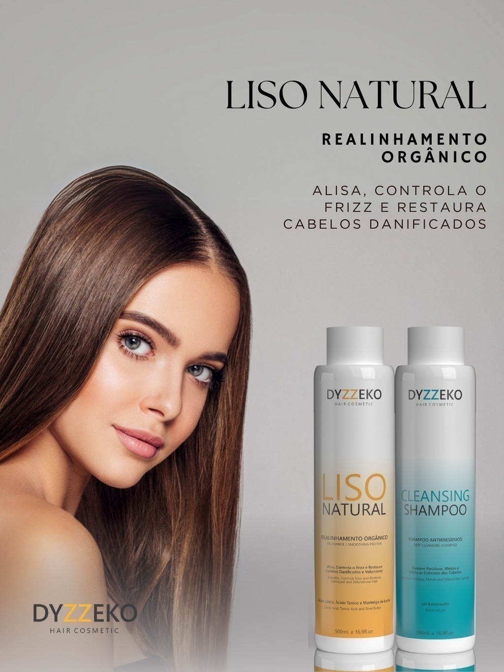 O Realinhamento Orgânico Liso Natural (0% formol), foi desenvolvido para cabelos volumosos ou indisciplinados, promovendo Redução de Volume, Eliminação do Frizz, Intensa Restauração e Efeito Liso Natural. Sua fórmula rica em Ácido Latico, Ácido Tanico e Manteiga de Karité proporciona aos fios sedosidade, brilho e um liso natural.Tratamento totalmente seguro, livre de formol ou qualquer substância tóxica.